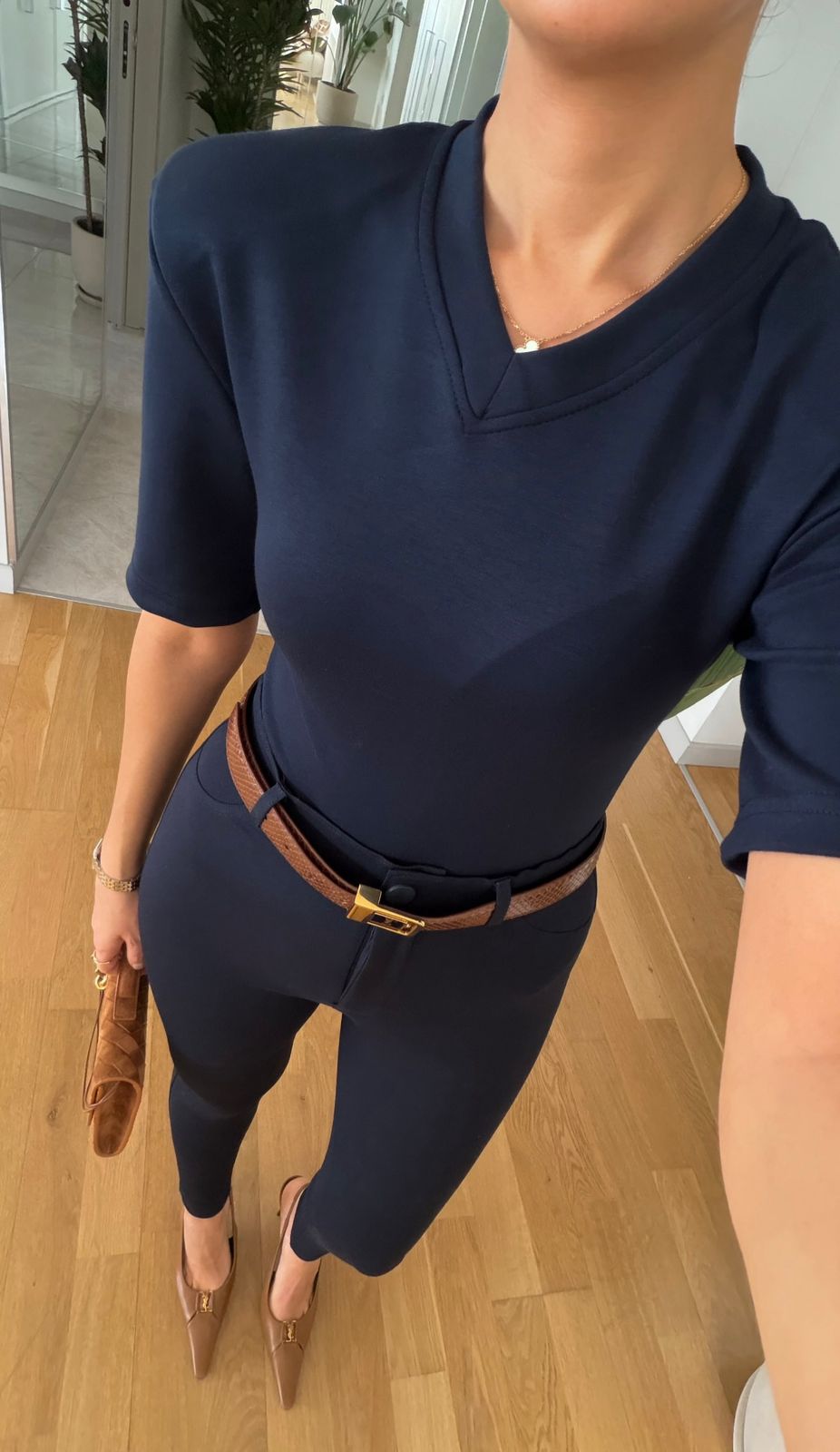 Navy Blue V-neck Structured Shoulder Body
