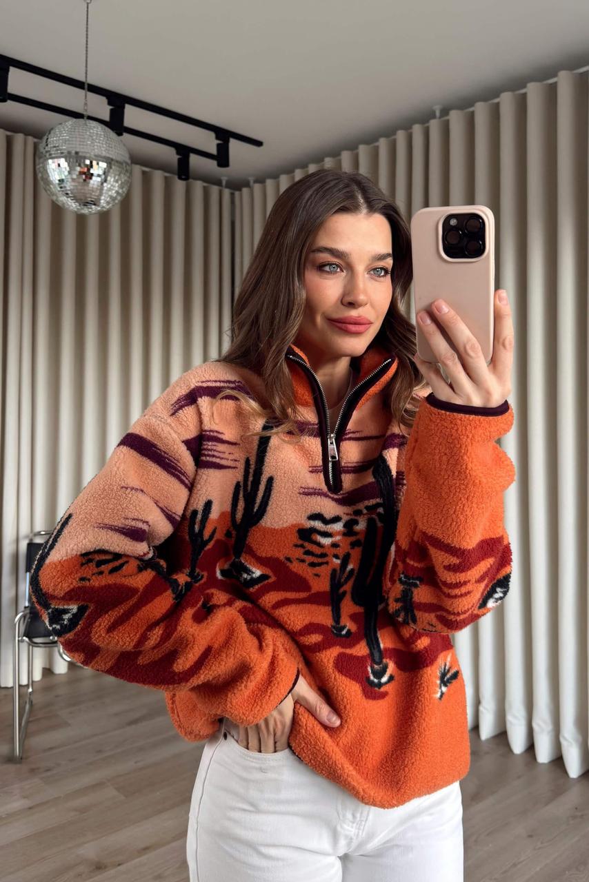 Orange Desert Print Fleece Pullover Sweater