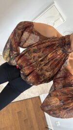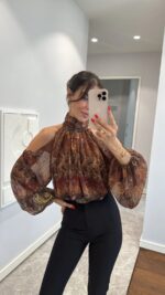 PATTERNED CHIFFON SHOULDER DECOLLETE BLOUSE