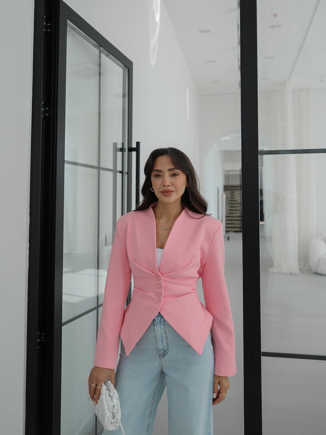Pink Tailored Blazer With Button Detail