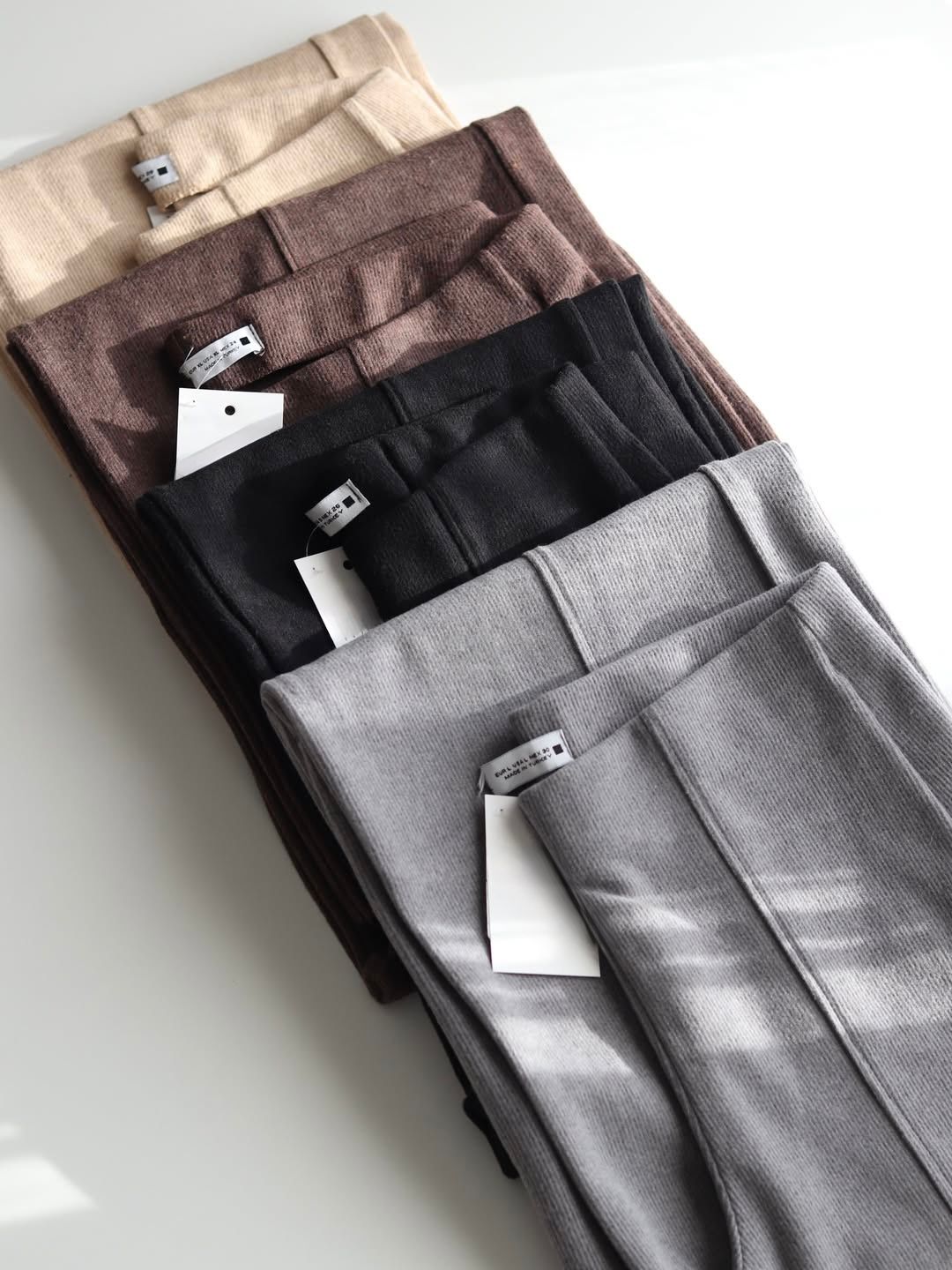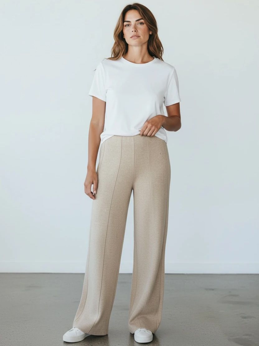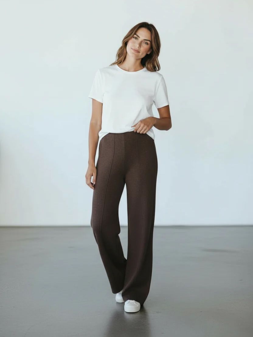 Khaki Elastic Waist Velvet Palazzo Trousers