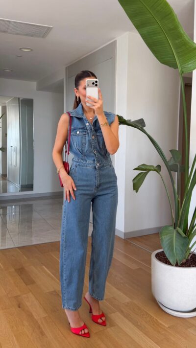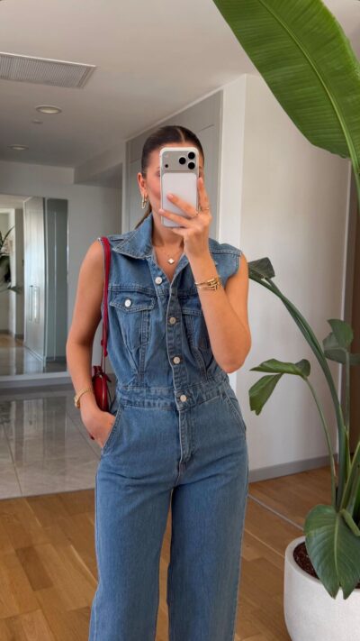 Sleeveless Blue Denim Jumpsuit