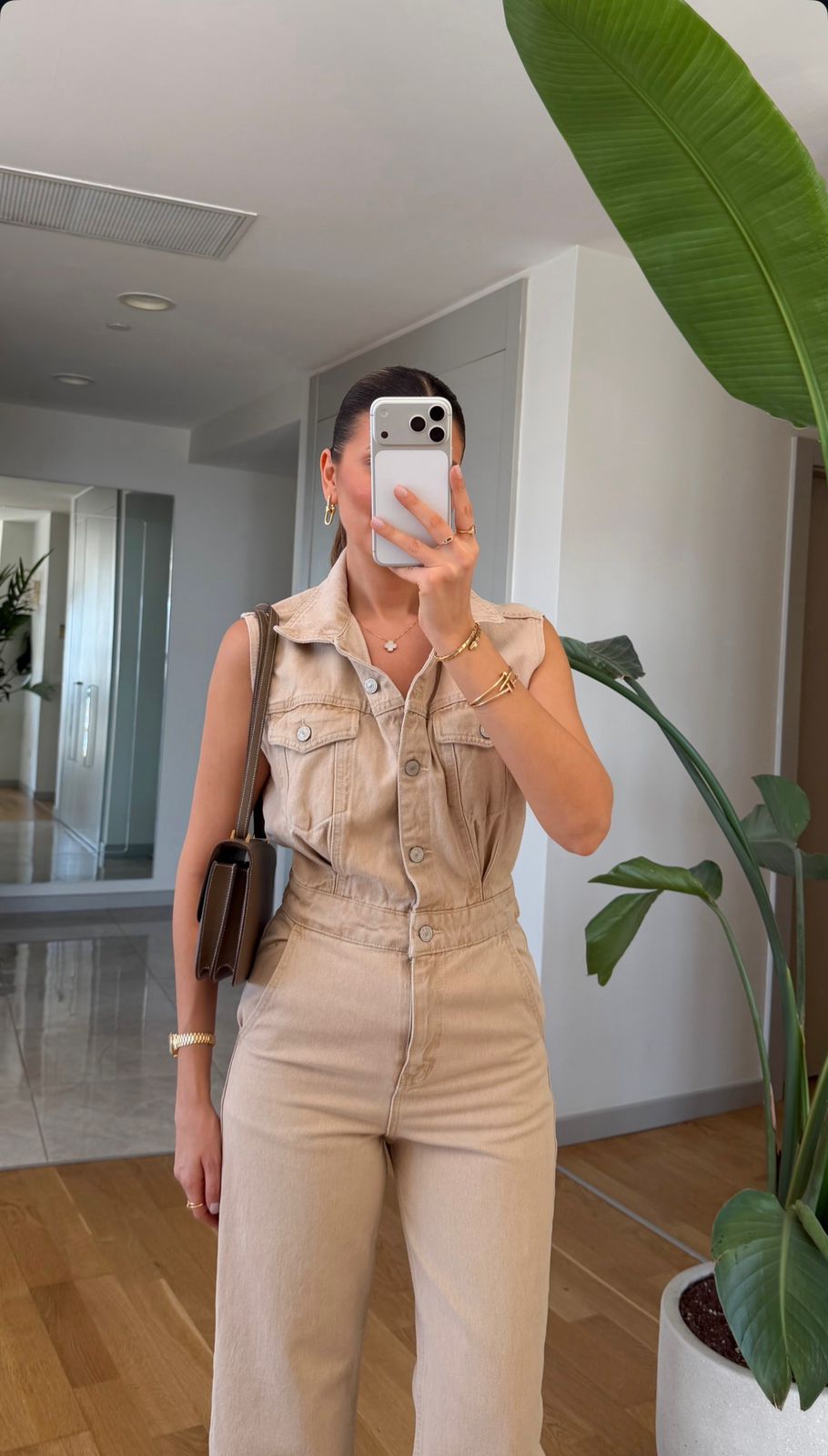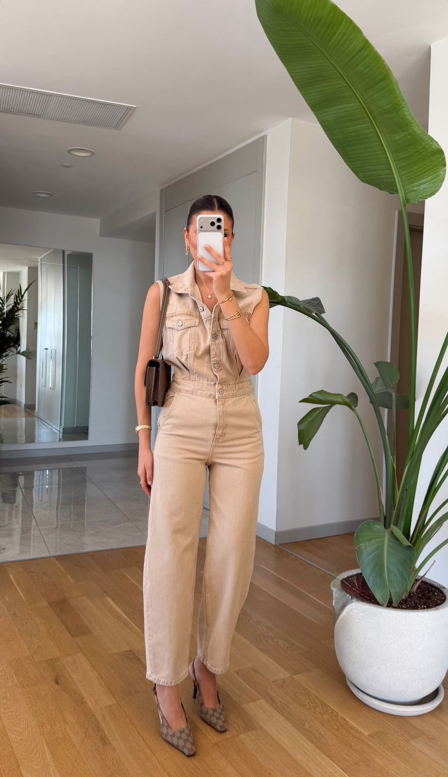 Sleeveless Beige Denim Jumpsuit