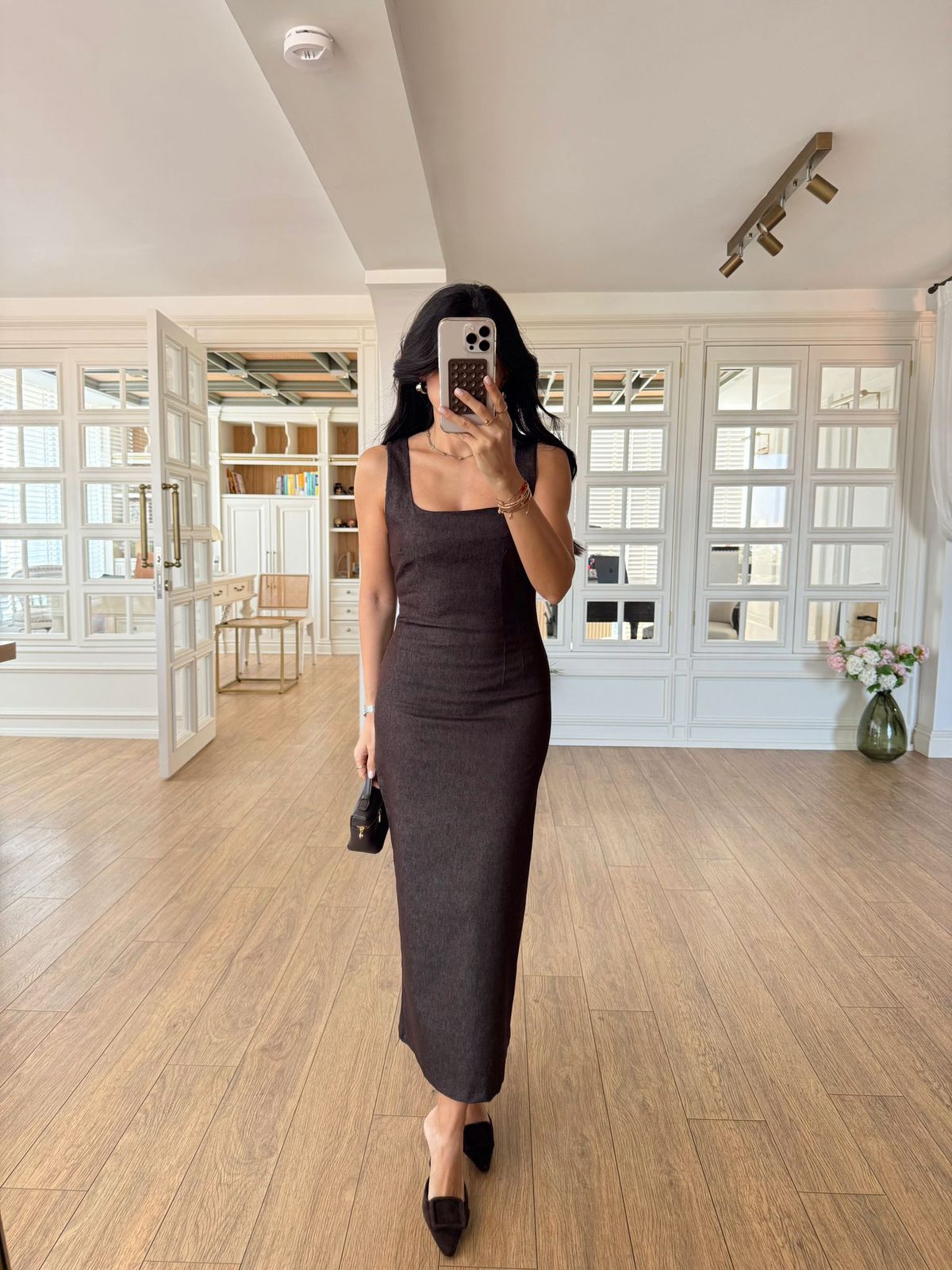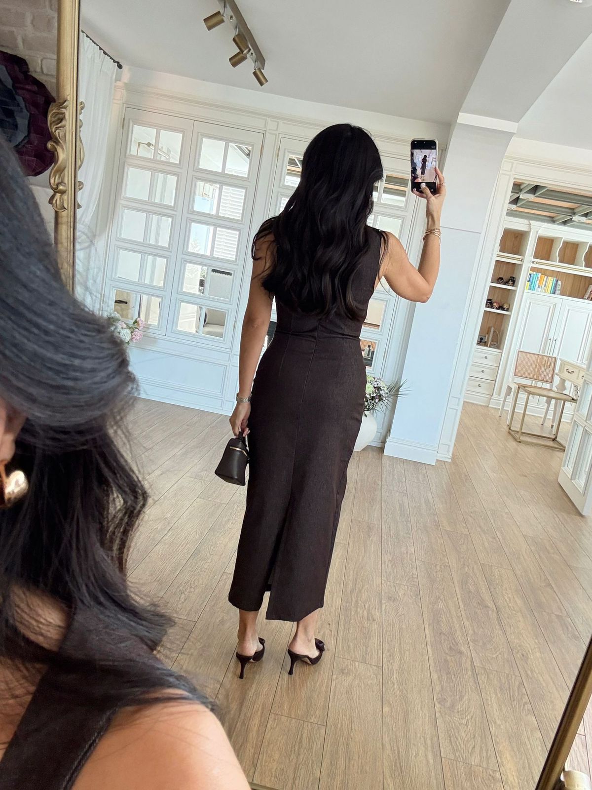 Sleeveless Black Square Neck Midi Dress