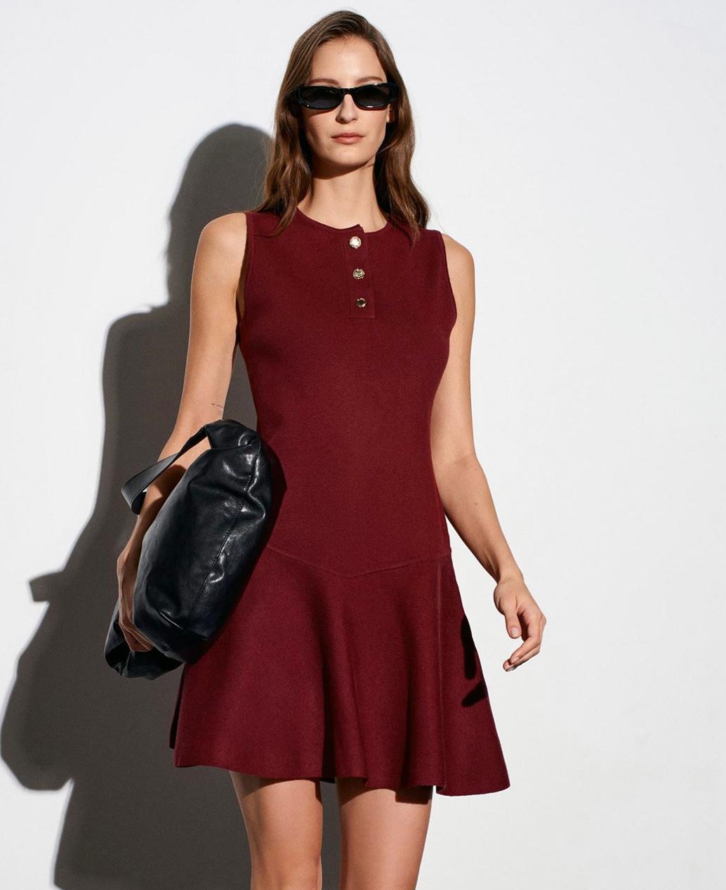 Sleeveless Burgundy Button-front Flare Dress