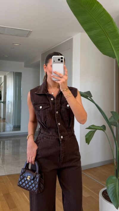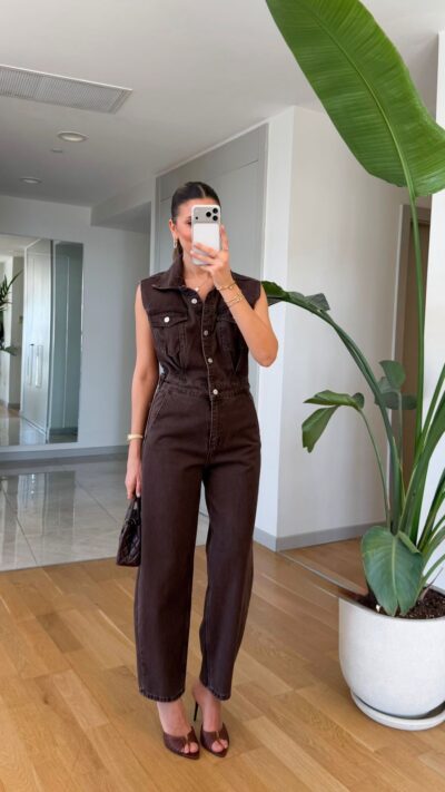 Sleeveless Brown Denim Jumpsuit