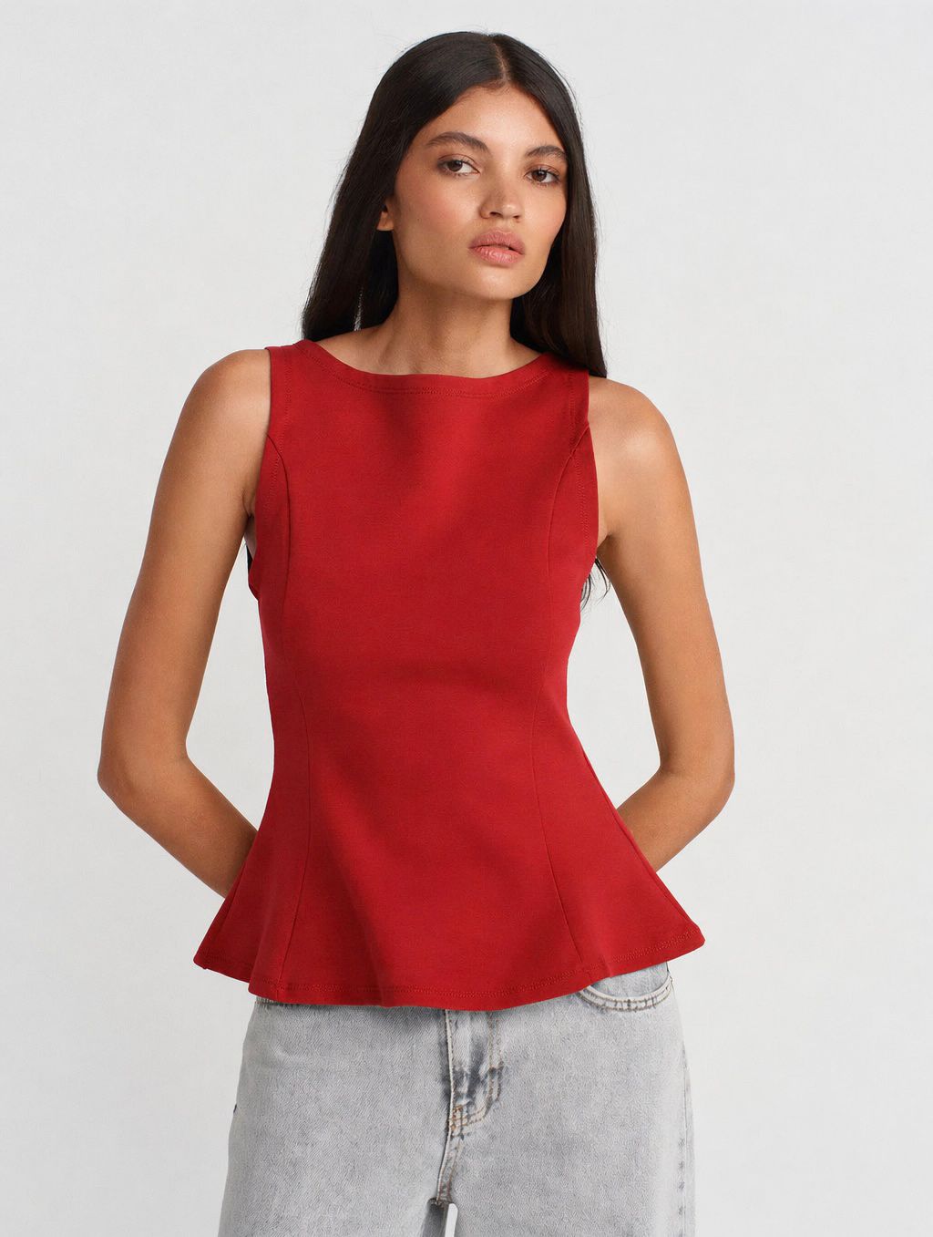 Sleeveless Red Peplum Top