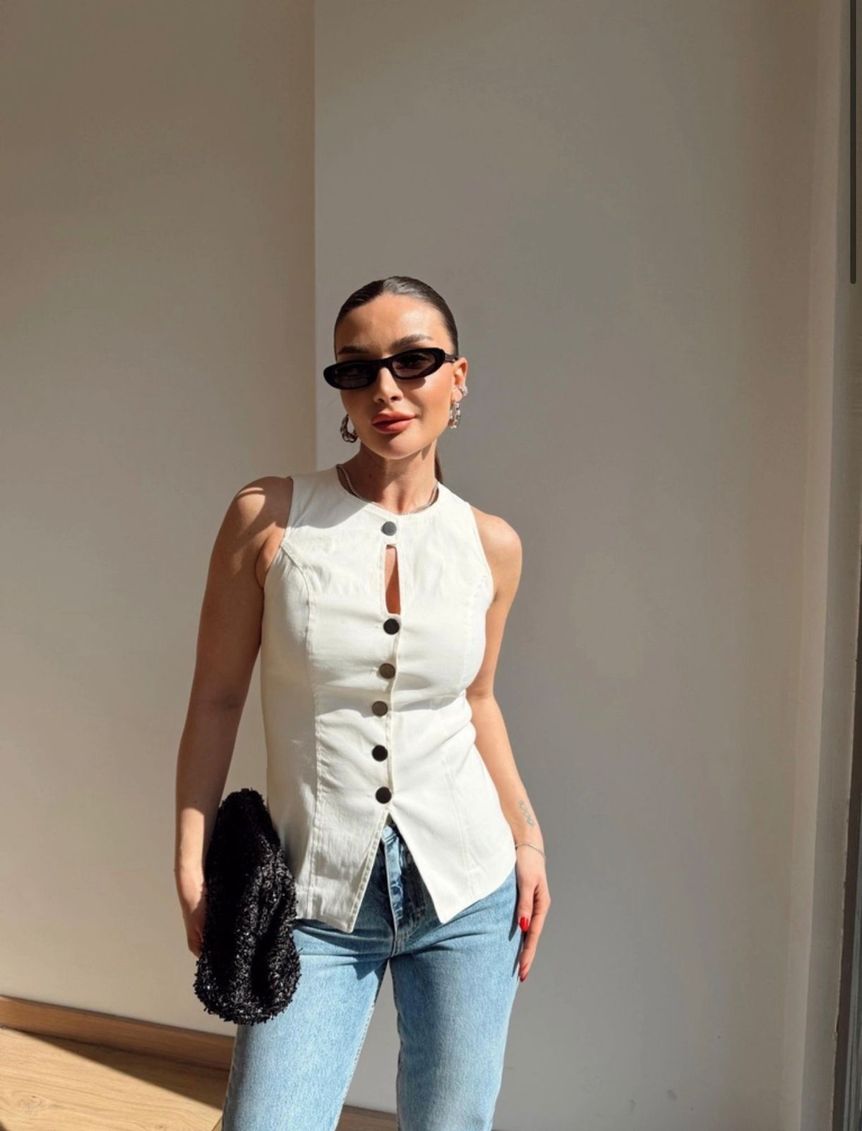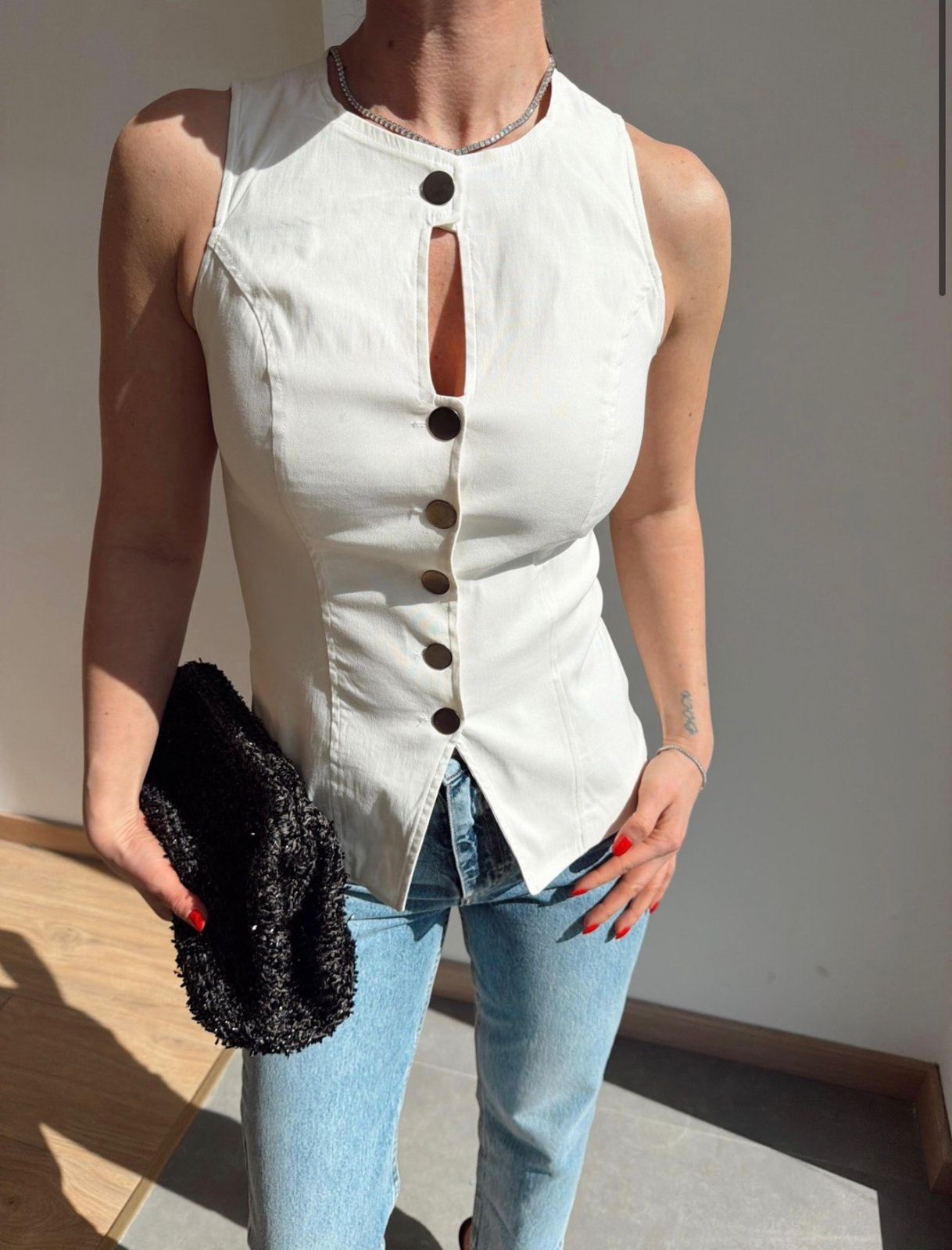 Sleeveless White Button Front Vest