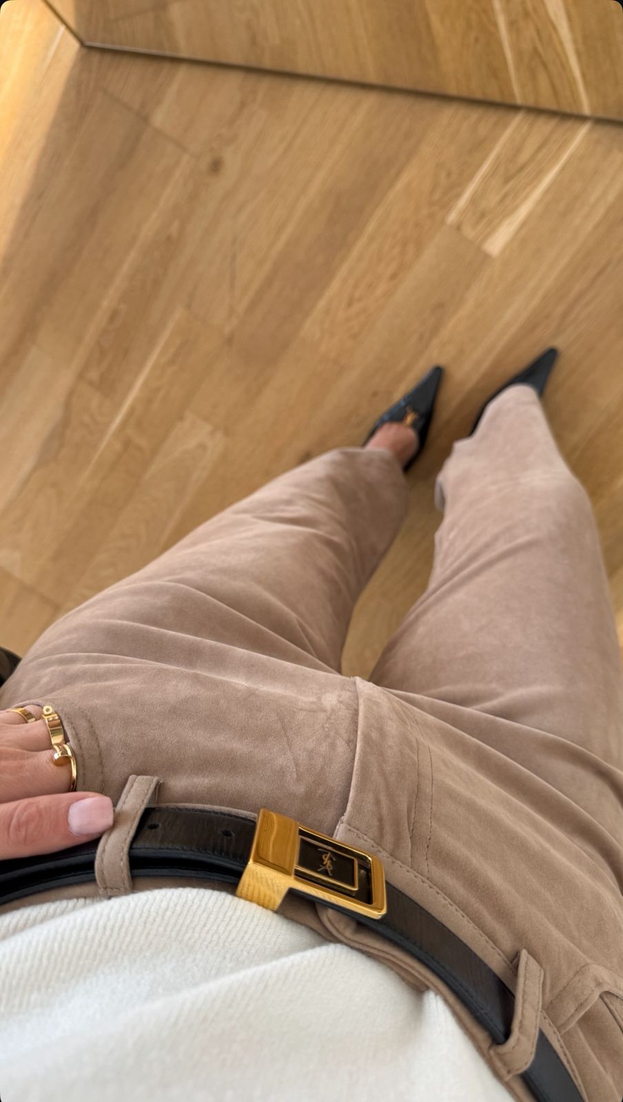 Khaki Elastic Waist Velvet Palazzo Trousers