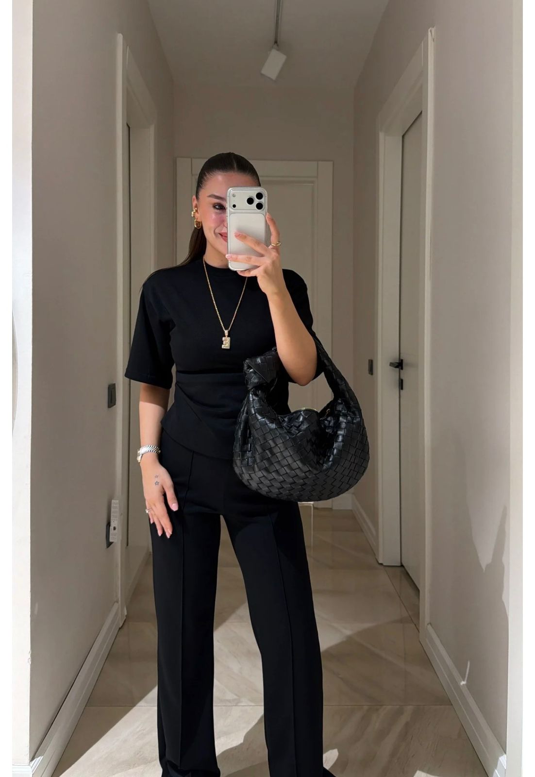 Women’s Black Short Sleeve Top And Pants Set
