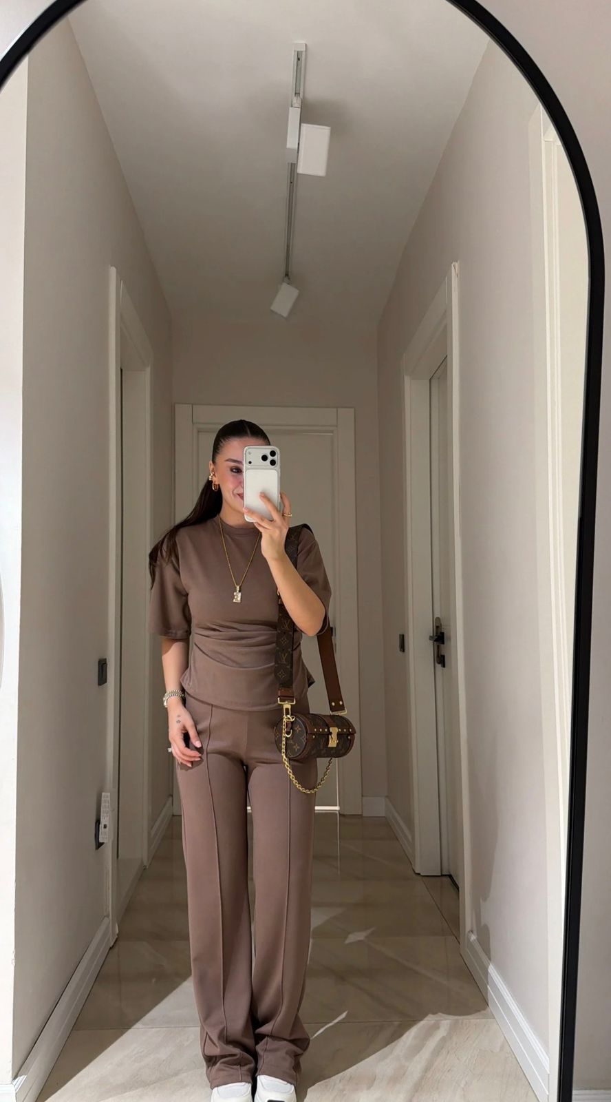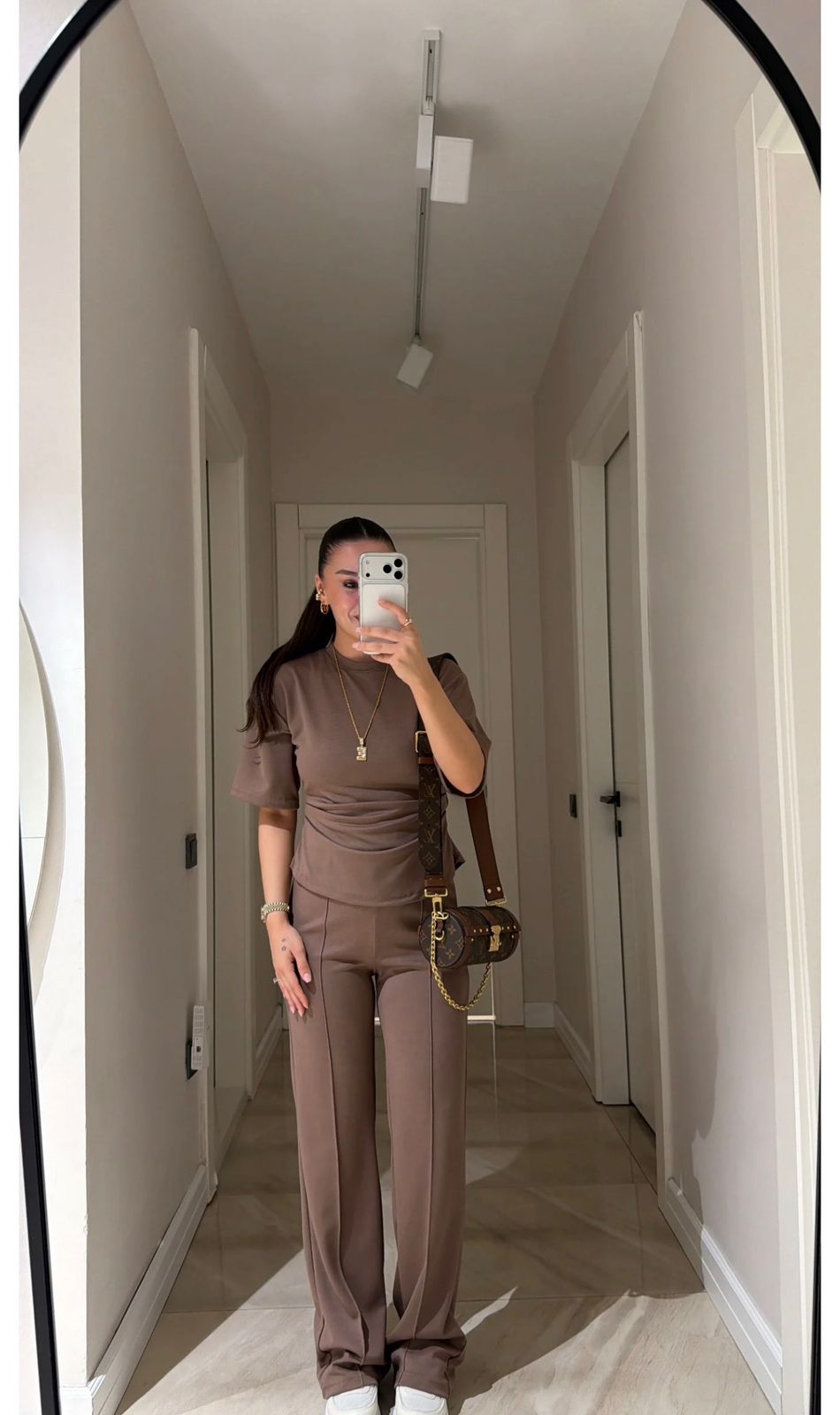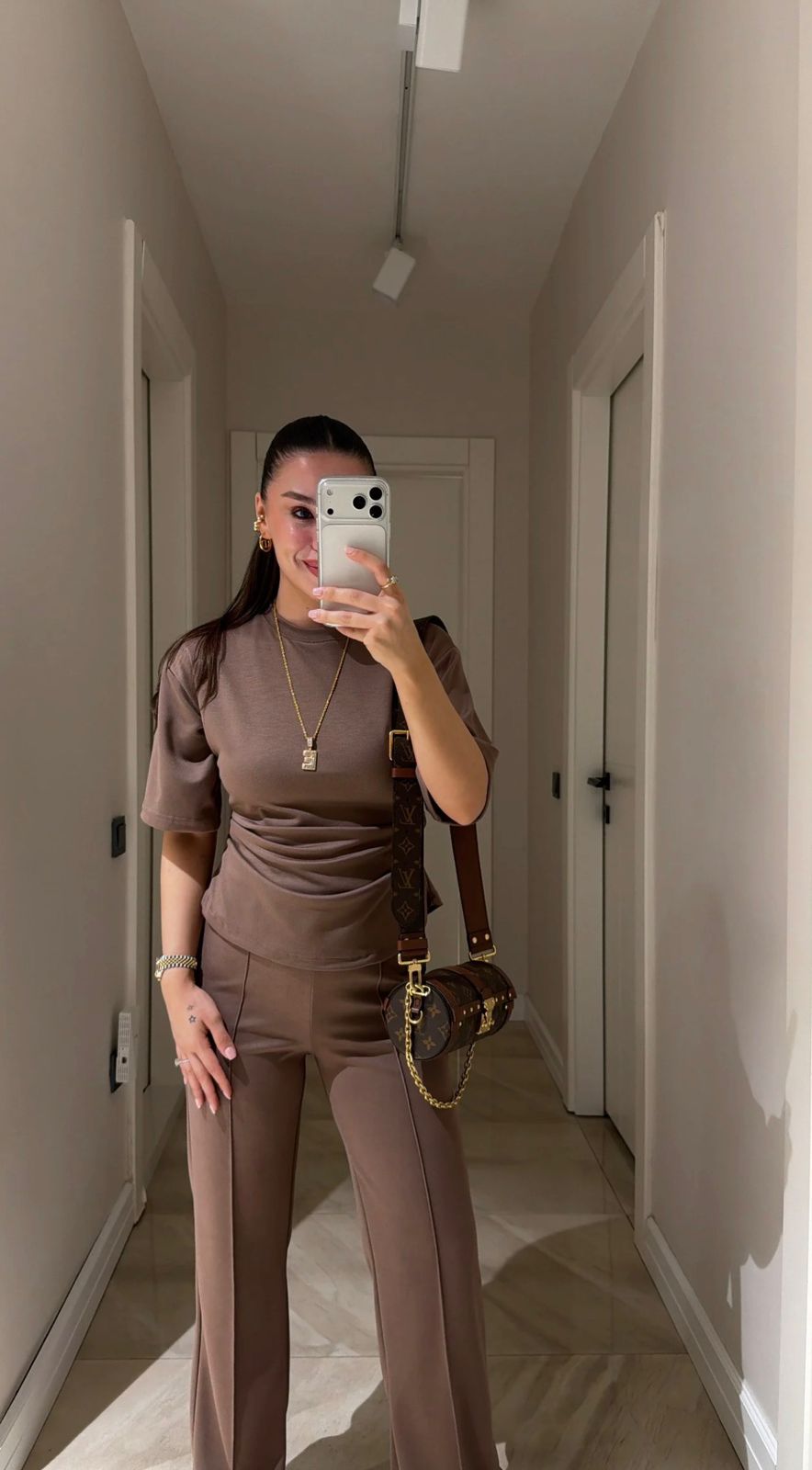 Women’s Brown Short Sleeve Top And Pants Set