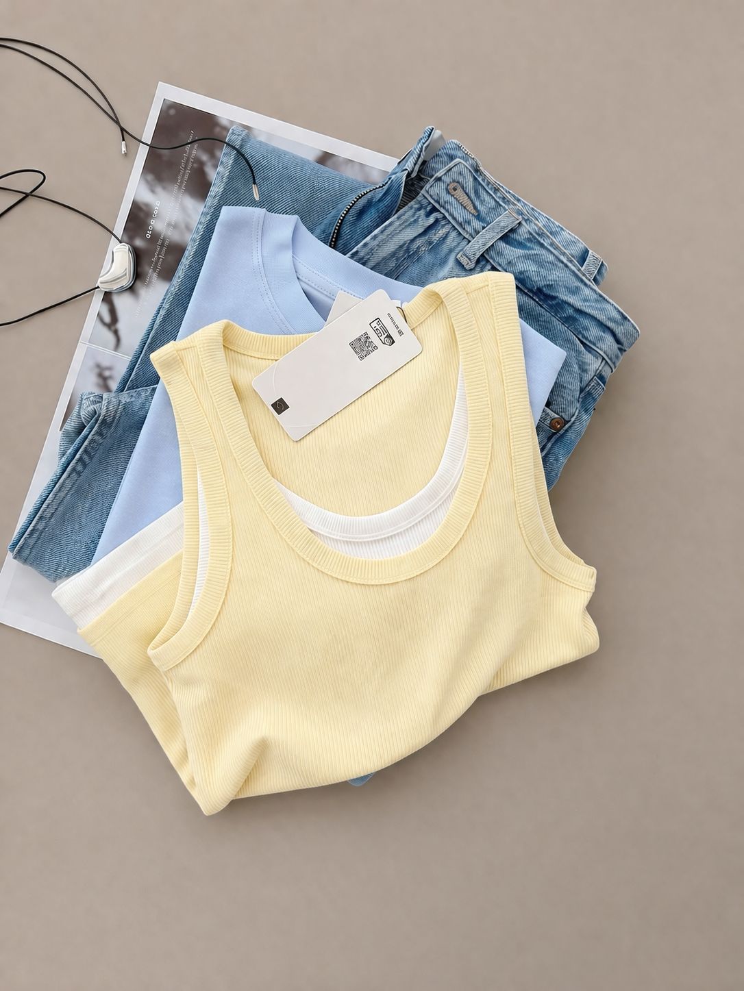 Yellow Ribbed Cotton Tank Top