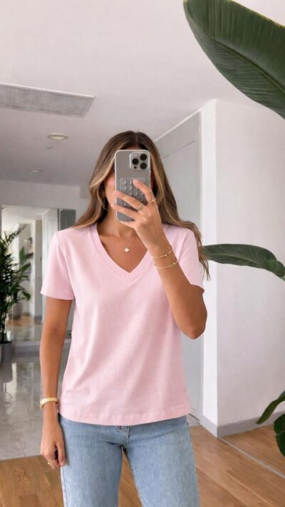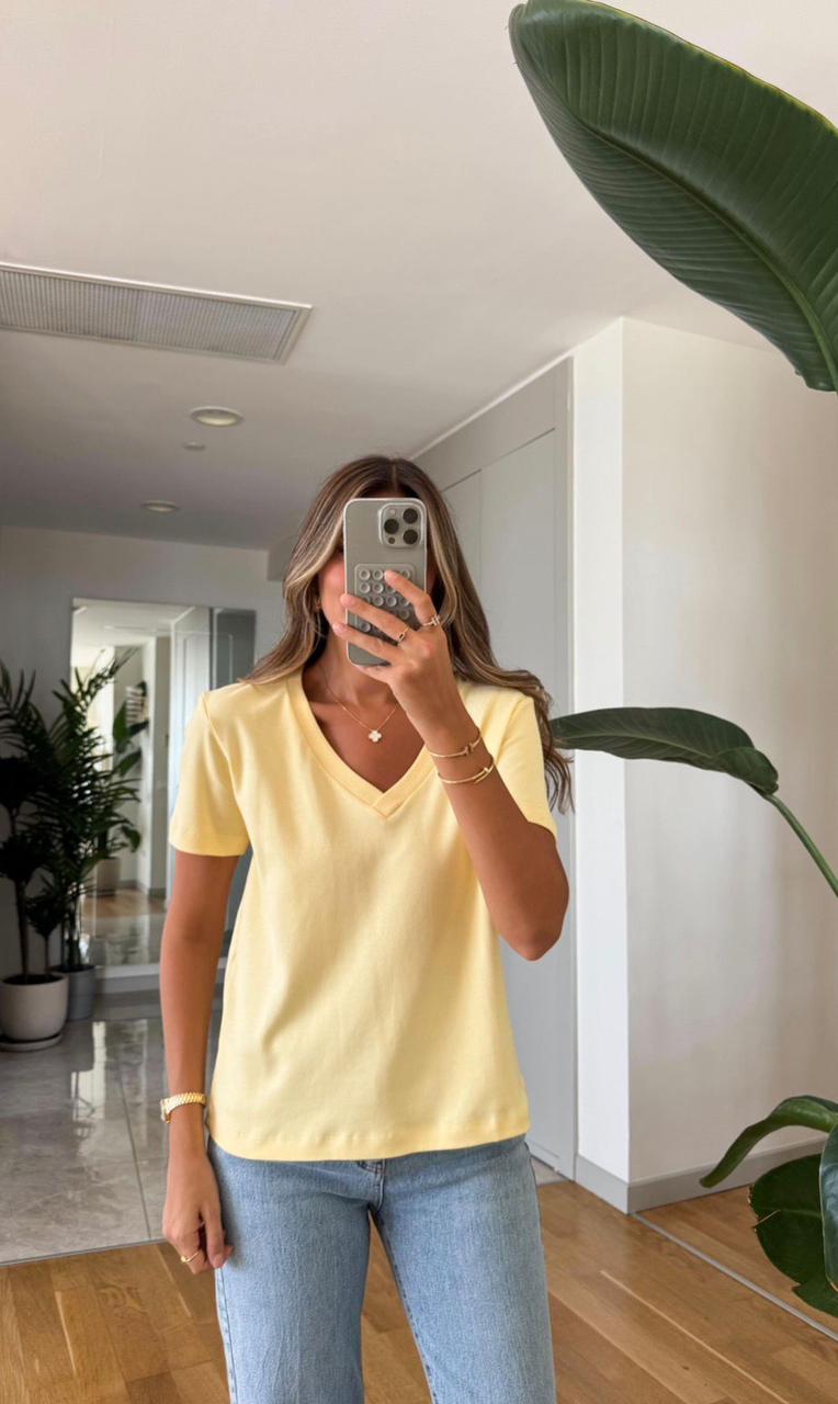 Yellow V-neck Short Sleeve T-shirt