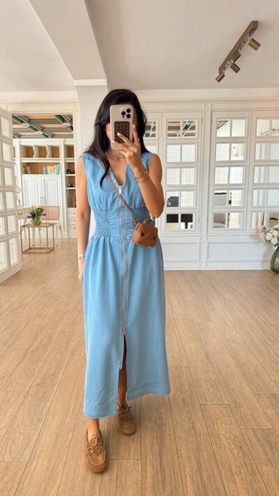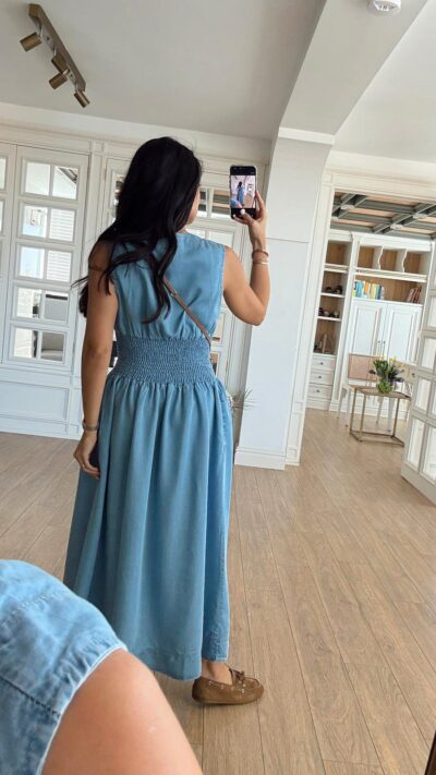 Sleeveless Light Blue Denim Maxi Dress