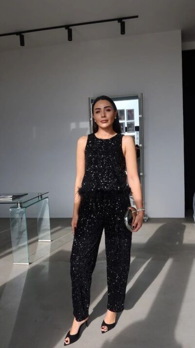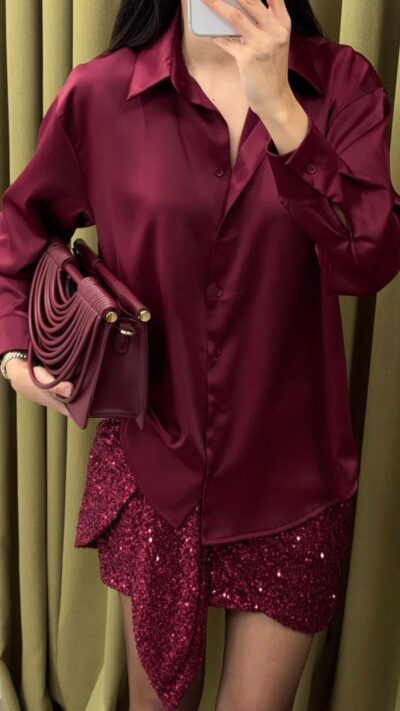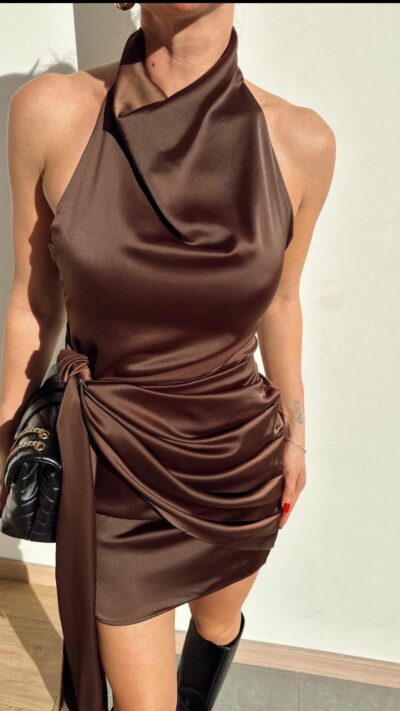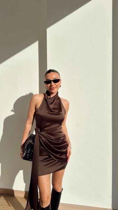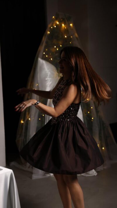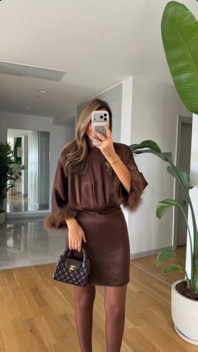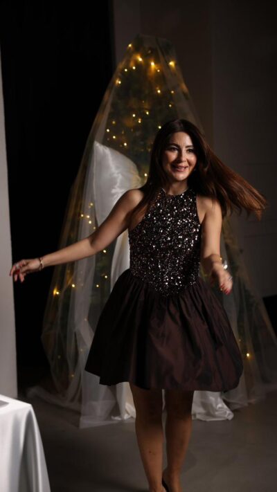 Preorder Top Sequin Bottom Poplin Dress -brown