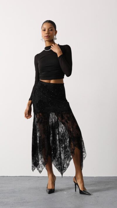 Daffy Duck Side Zippered Hem Lace Mini Satin Skirt