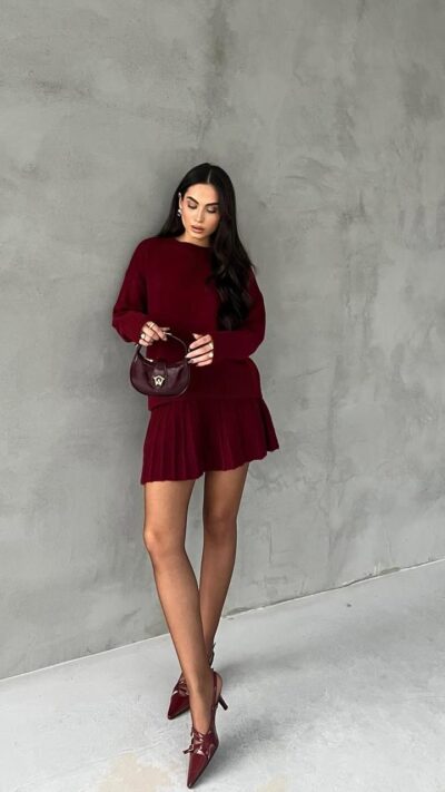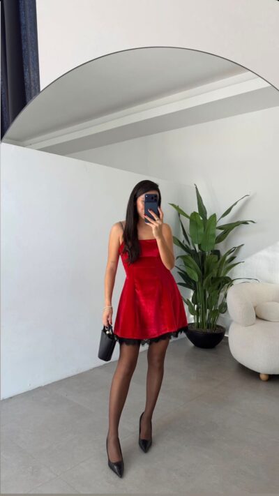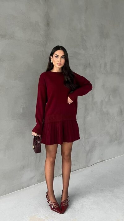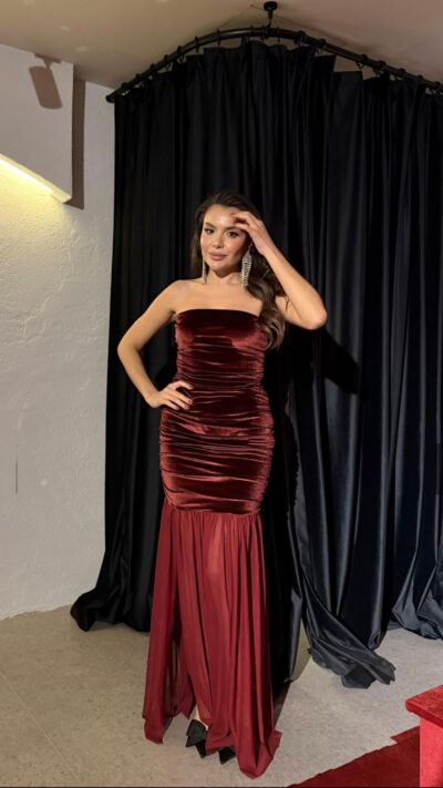 Demeter Claret Red Strapless Tulle Detailed Dress