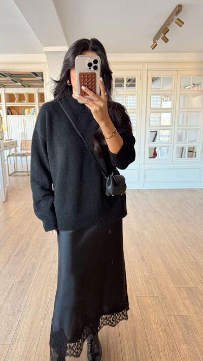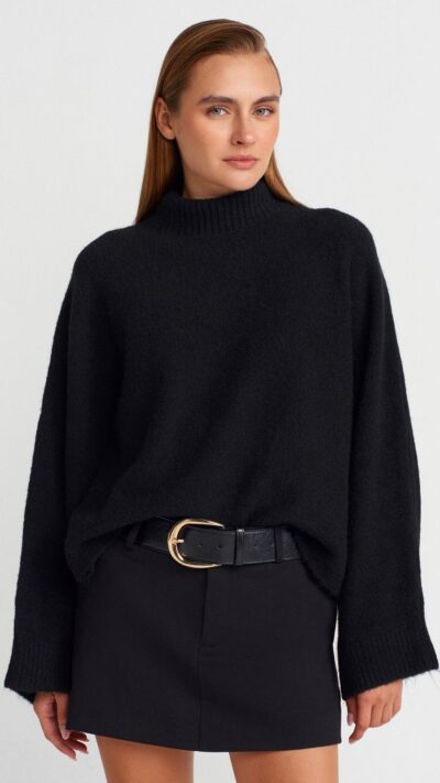 Black Sherpa Sweater With Contrast Trim