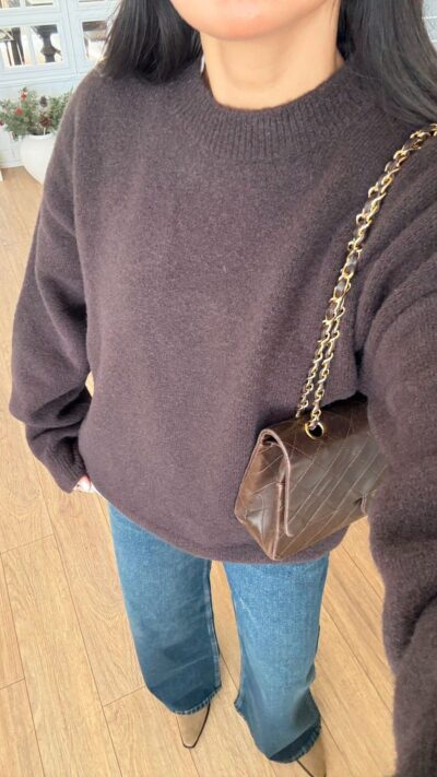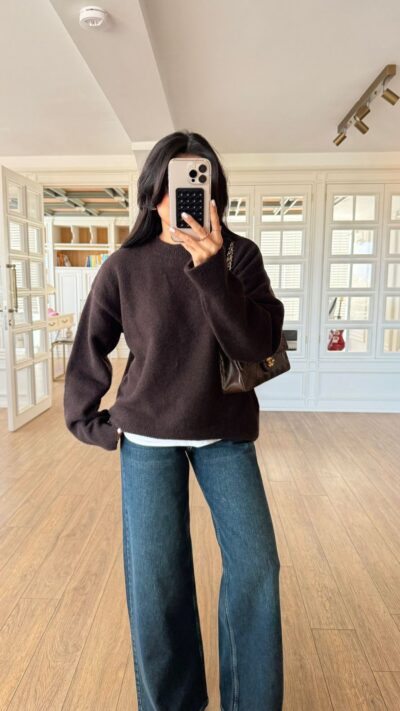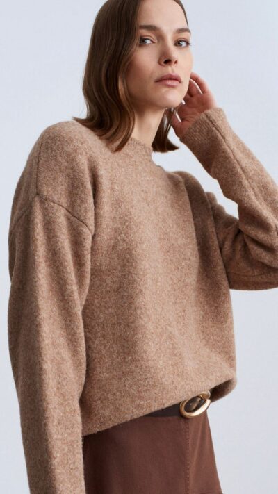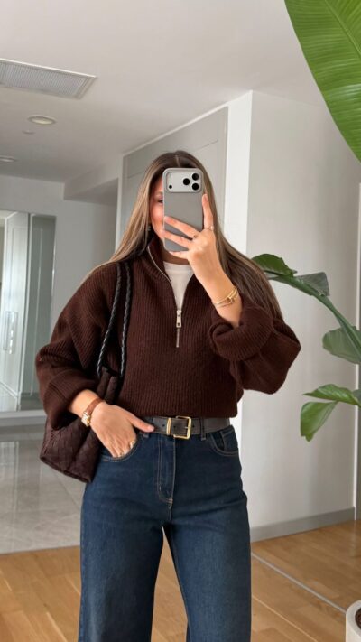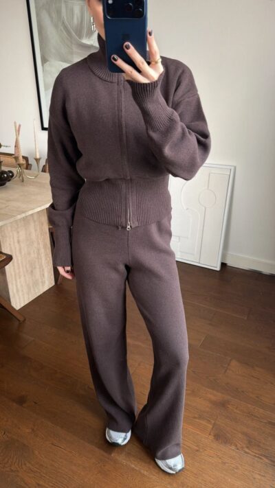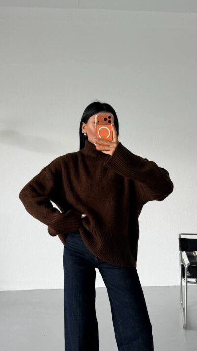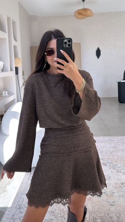 Brown Knit Long Sleeve Mini Dress