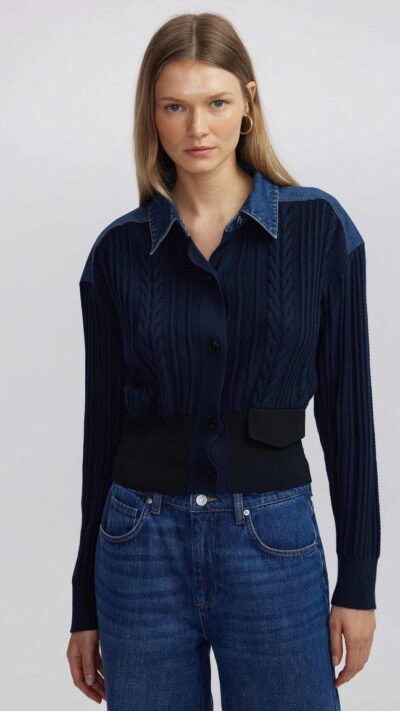 Bohemian Patterned Loose Blue Knitwear