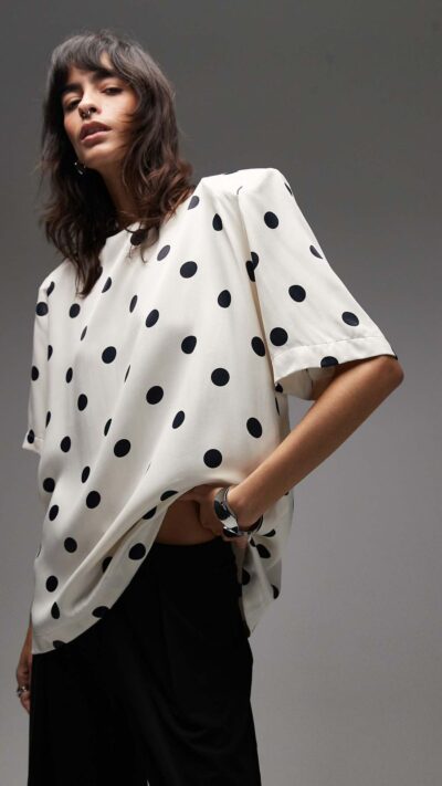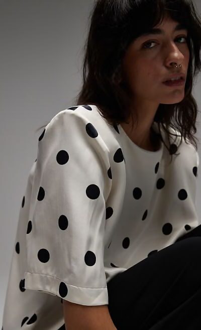 White Polka Dot Short Sleeve Blouse