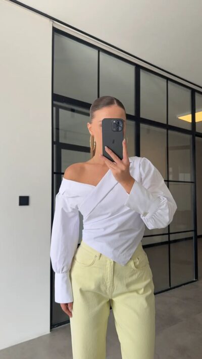 White Off Shoulder Long Sleeve Blouse