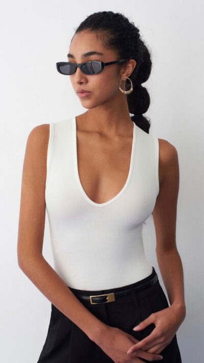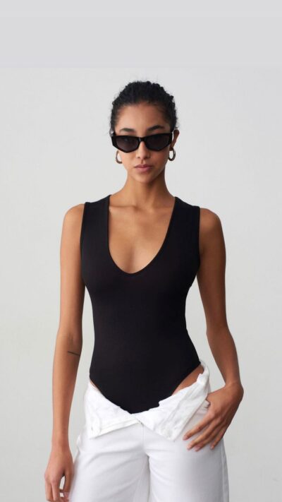 Black Sleeveless Scoop Neck Bodysuit