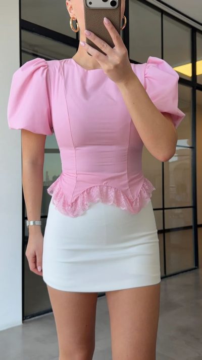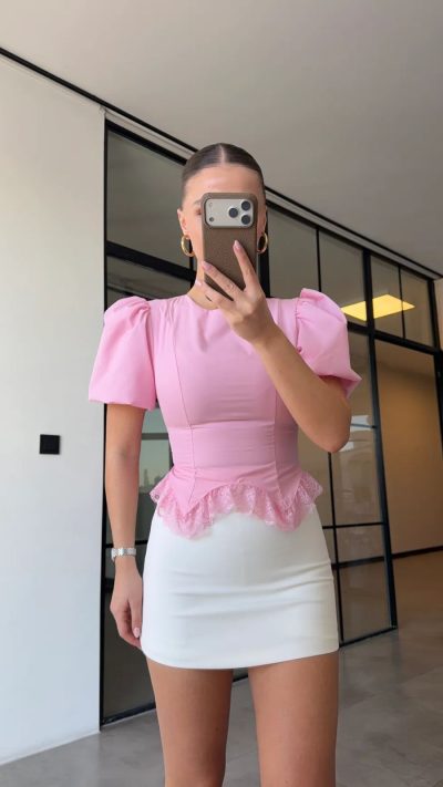 Pink Puff Sleeve Peplum Top