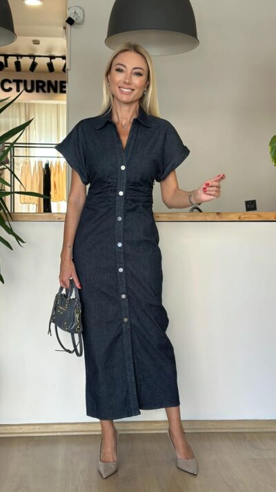 Dark Denim Button Down Midi Dress