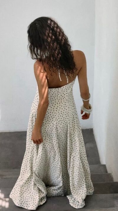 White Pattern Dotted Dress