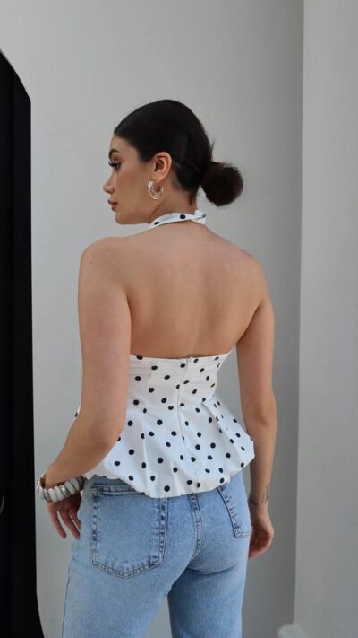 White Polka Dot Halter Peplum Top