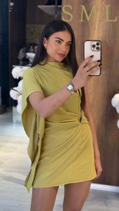 Yellow Draped Asymmetric Mini Dress