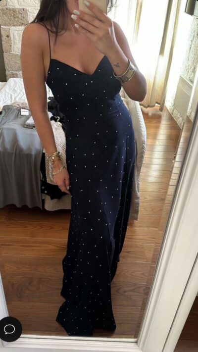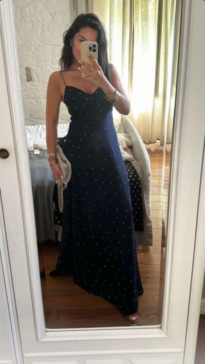 Navy Blue Polka Dot Maxi Dress
