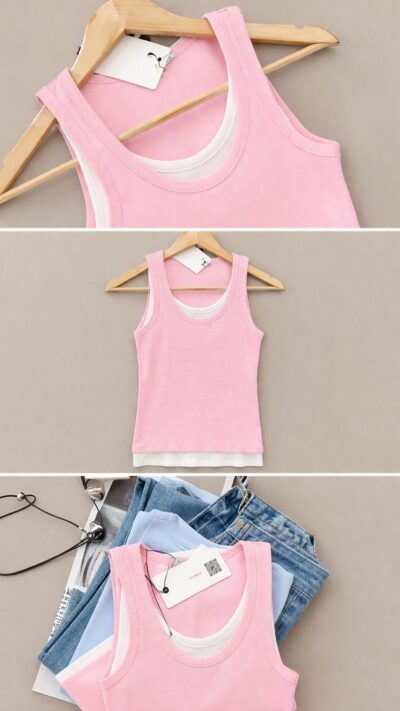 Pink Ribbed Cotton Tank Top