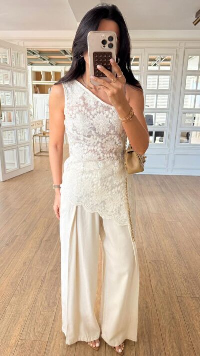 $38.00White One Shoulder Lace Top