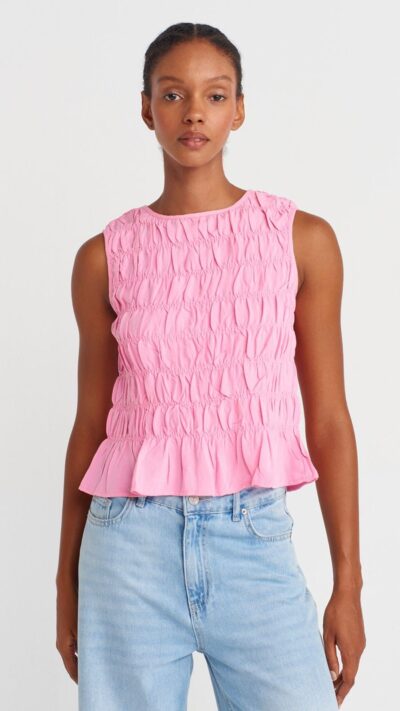 Dilvin Pink Smocked Top