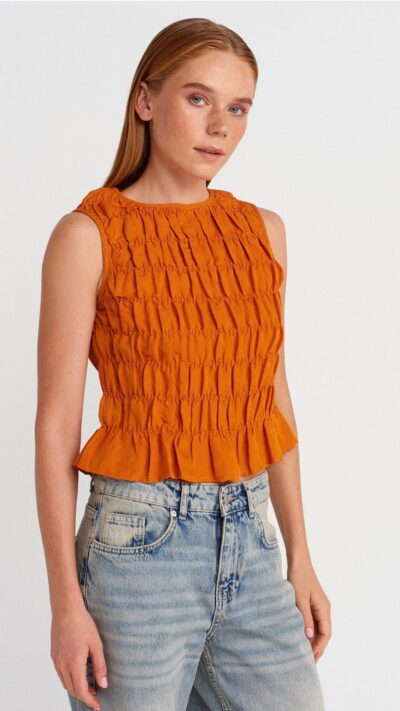 Dilvin Orange Smocked Top