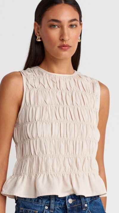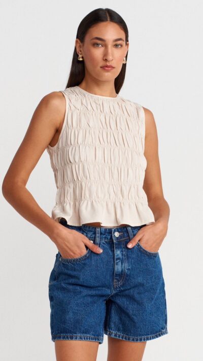 $25.00Dilvin Beige Smocked Top
