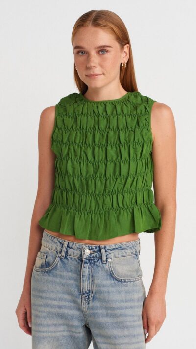 Dilvin Green Smocked Top