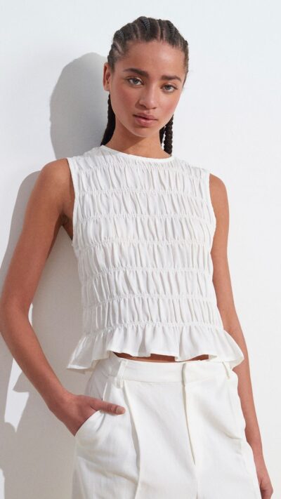 Dilvin White Smocked Top