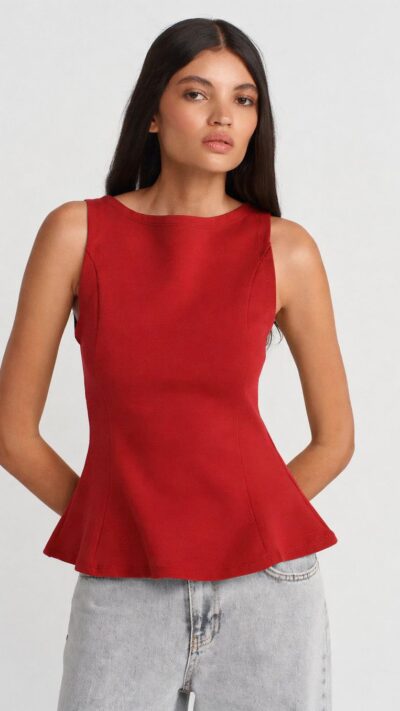 Sleeveless Red Peplum Top