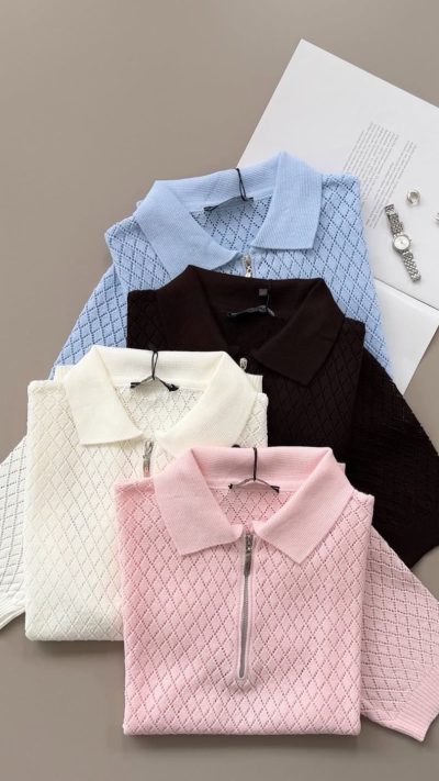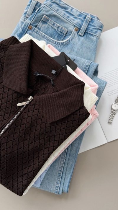 Diamond Pattern Zip Collar Knit Top ( 4 Colors)