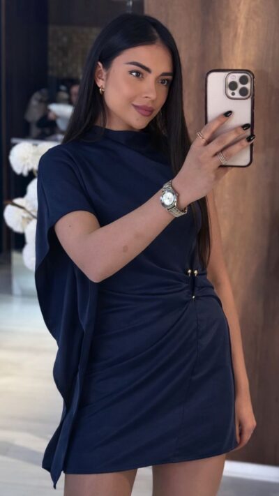 Navy Blue Draped Mini Dress