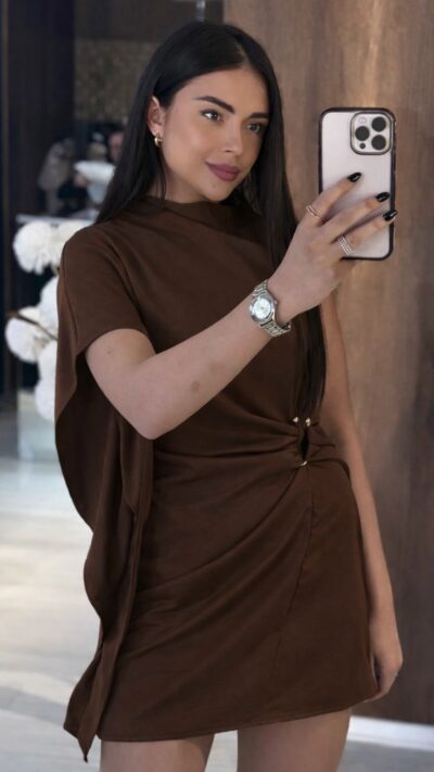 Brow Draped Asymmetric Mini Dress