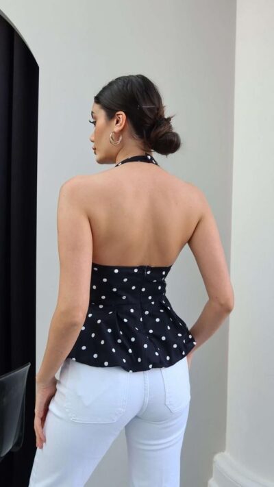 Black Polka Dot Halter Peplum Top