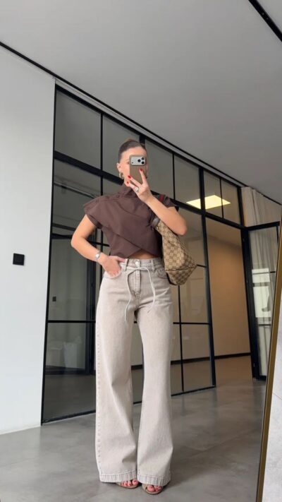 High Waist Wide Leg Brown Jeans