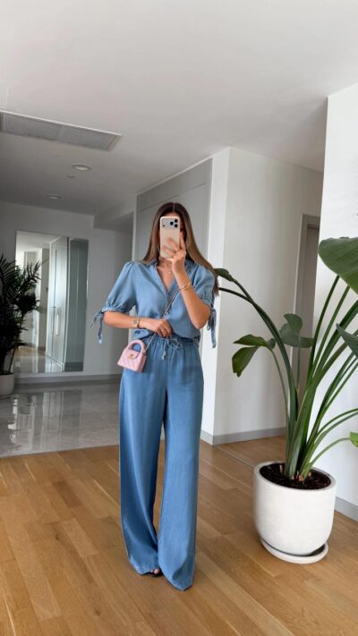 Light Blue Lace Pants Set