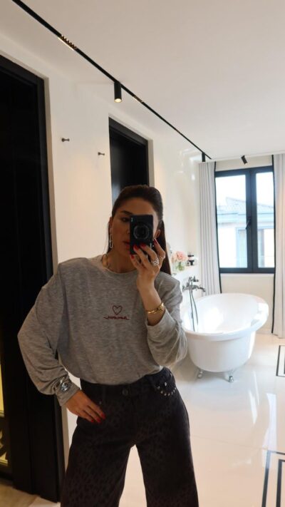Grey Embroidered Heart Sweatshirt