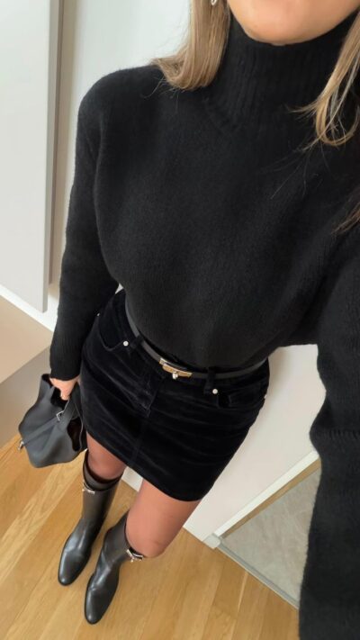 Black Velvet Dress With Buckle Detail