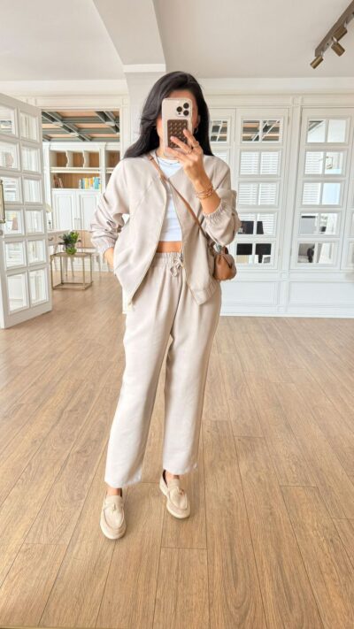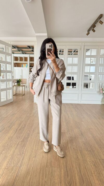 Beige Jacket And Pants Set